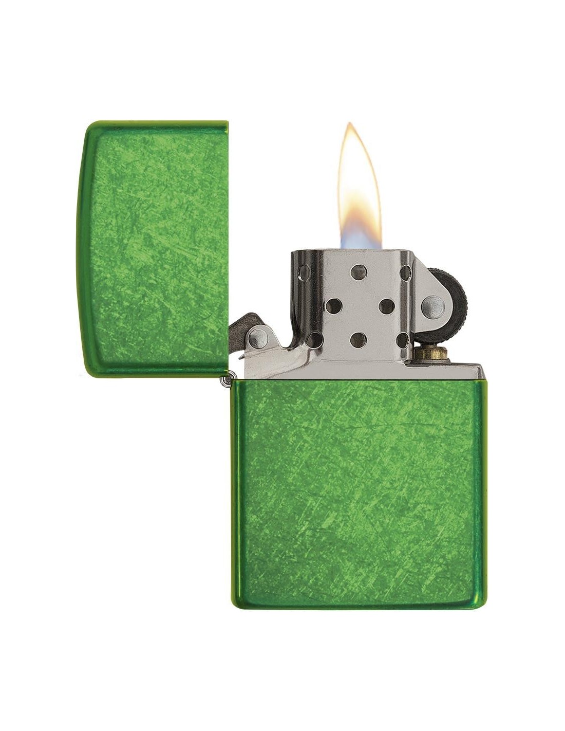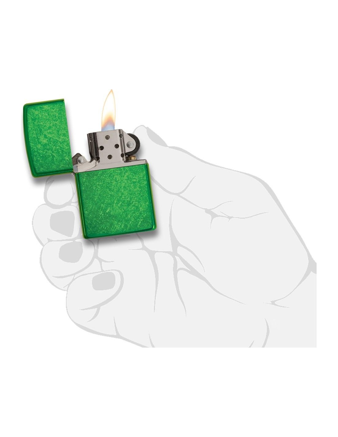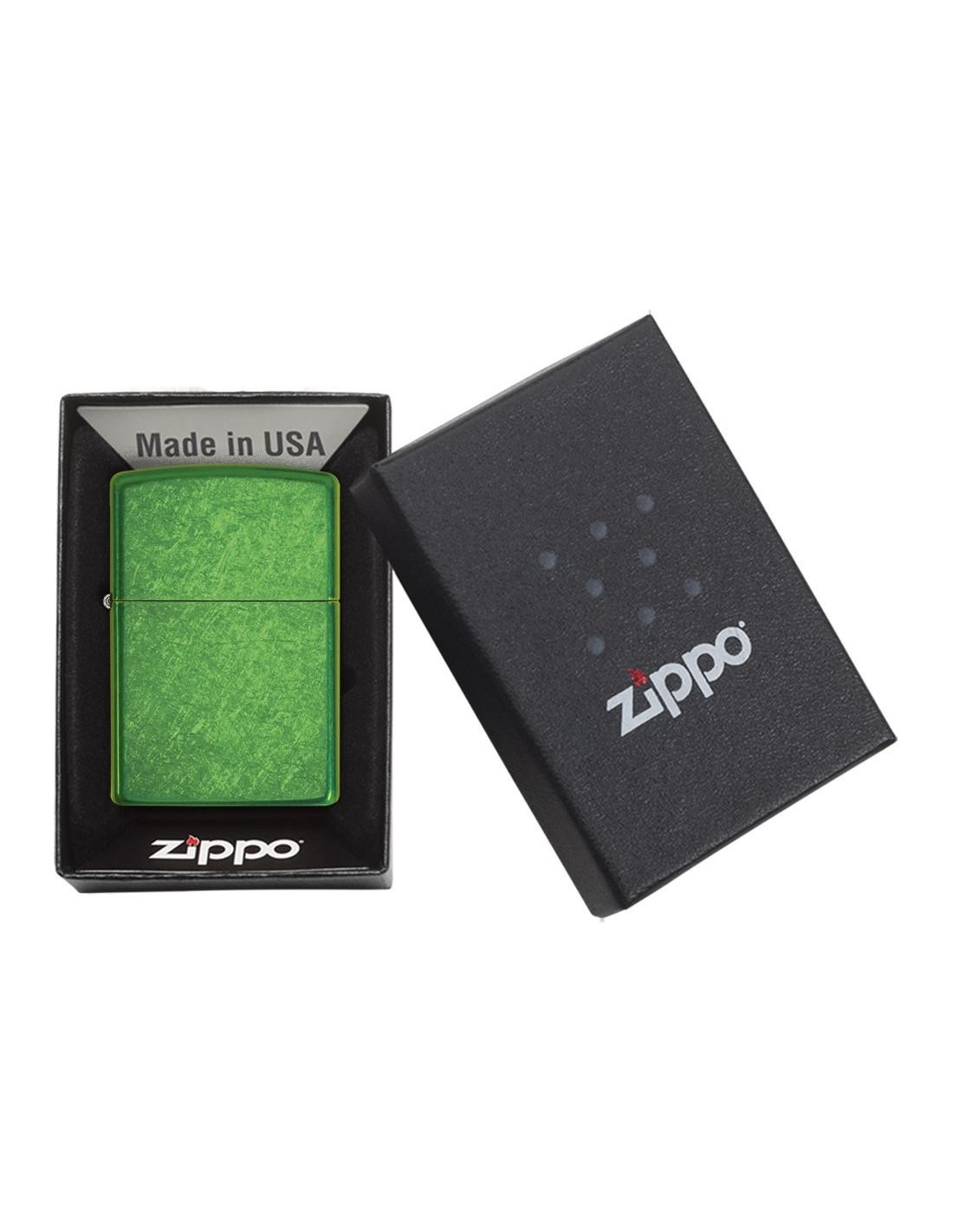 Green Zippo lighter with a Meadow surface.
