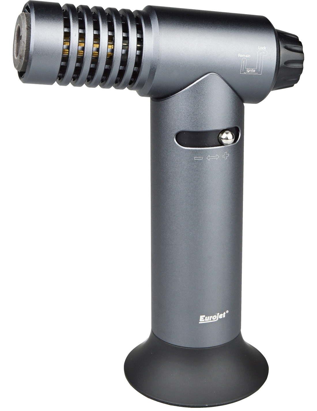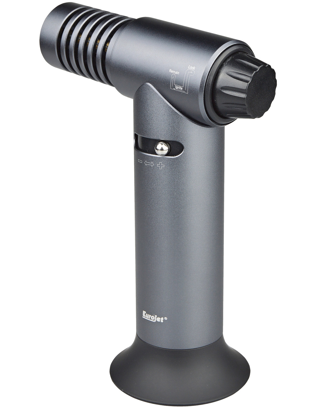 Stolový zapaľovač v tmavošedom prevedení, balený v originál krabici. Obsahuje stabilizátor plameňa, veľkú nádrž na plyn a detskú poistku. Pozor! Zapaľovač obsahuje nádobu pod tlakom, narábajte s ním opatrne. Pri nastavovaní sily plameňa držte zapaľovač smerom od tváre a nenechávajte ho v blízkosti detí.